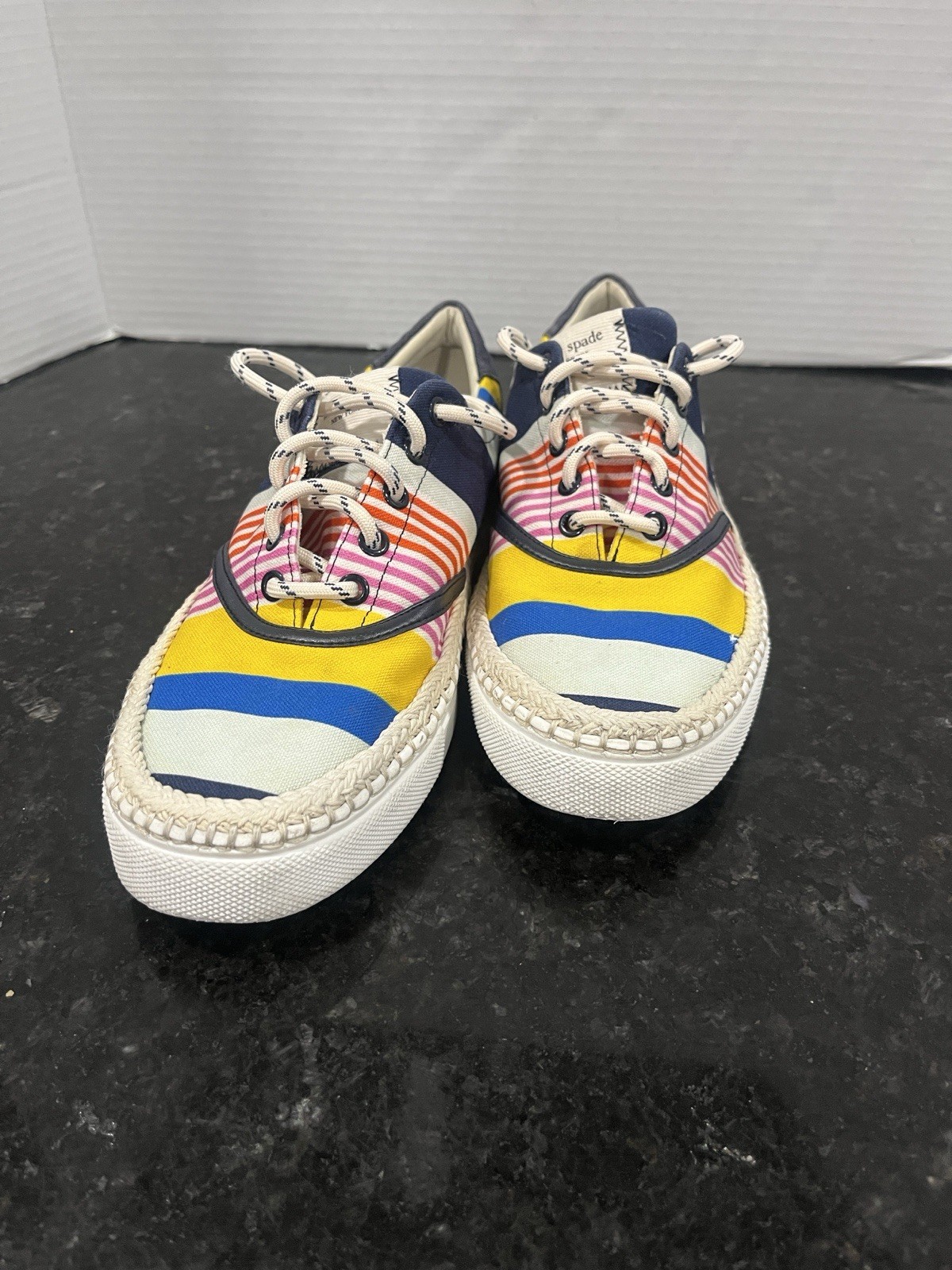 The Kate Spade New York Women's Shoes are stylish and comfortable flats perfect for casual occasions during the spring and summer seasons. Featuring a slip-on closure and a solid multicolor design, these shoes are made with a textile upper and leather lining for a high-quality feel. The brand's signature style and attention to detail make these shoes a fashionable choice for women who appreciate both style and comfort. Ideal for a day out or a casual get-together, these shoes are a versatile addition to any wardrobe.