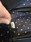 The Kate Spade Prince Street Blakely Tote WKRU0367 is a stylish and spacious tote bag designed for women. It features a solid pattern with a combination of nylon and leather exterior in black, accented with gold hardware. The tote has double handles for easy carrying and a charming navy lining with gold dots. With its large size and elegant design, this tote is perfect for everyday use or special occasions, showcasing the classic and sophisticated style that Kate Spade is known for.