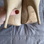 These beautiful Kate Spade New York women’s size 8 suede cream beige tan nude stiletto heels still have a lot of life left in them, they are heavily worn but still have good life left, pumps, dressy, party, preppy, city, business, some discoloration at back of heels, 3” heels, made in Italy, please see photos and zoom in for full condition and measurements All items come from a smoke free, pet friendly home. Once the item is out of my possession I cannot guarantee it will not be exposed to smoke. Items that have been washed may have been exposed to scented laundry detergents, so please be aware. Items may have been in contact with scents (perfumes, soaps, lotions, etc). Color may vary due to lighting sources and differ between monitors. Measurements may vary by ruler and are approximate. Thank you! If I miss a call out, please message me and I’ll make it right! Thanks for shopping!