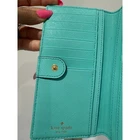 The Kate Spade Turquoise Leather Zip-Around Wallet is a stylish and functional accessory crafted from high-quality turquoise leather. It features a zip-around closure that secures your essentials, including multiple card slots and compartments for organized storage. The wallet’s dimensions are approximately 7.5 inches in width and 4.5 inches in height, making it spacious enough to hold your cards, cash.