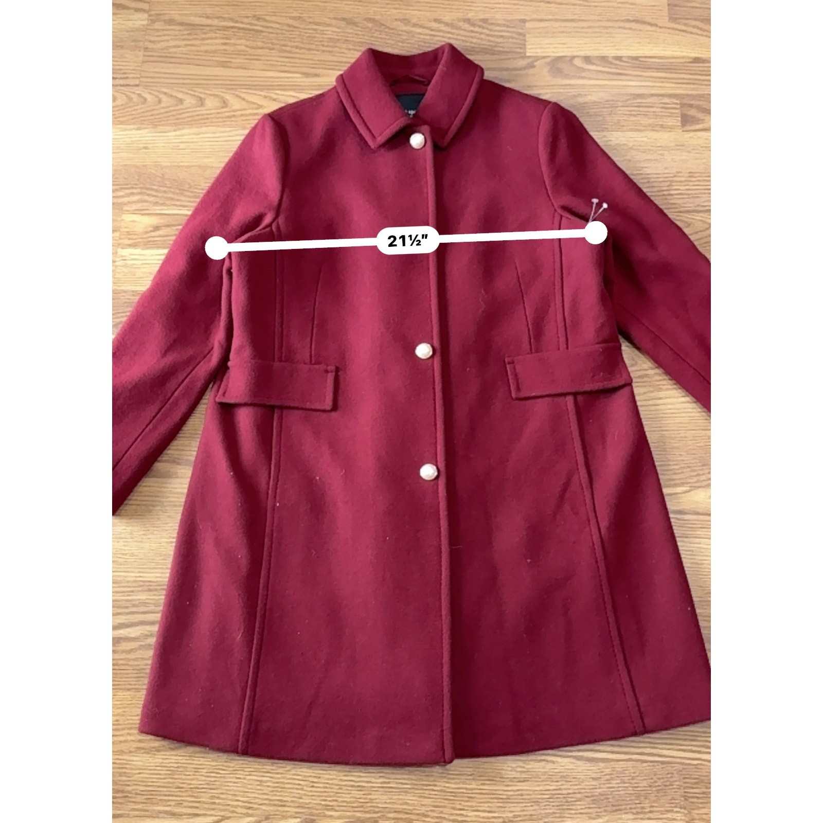 Kate spade BURGUNDY PEARL BUTTONS A-line Wool Blend Coat size XL NWOT A sophisticated and stylish coat with a touch of elegance. A-line silhouettes can be quite flattering for the edgy yet classic look! Pearly buttons underscore the contemporary polish of a lightweight wool-blend coat in a sleek A-line silhouette. • 35" length • Point collar • Lined • 52% wool, 38% polyester, 10% other fibers • Dry clean