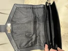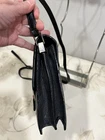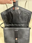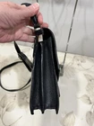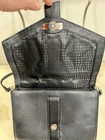 The product is a vintage kate spade navy blue leather crossbody bag. It features a snap closure, gold hardware accents, and a black fabric lining. The exterior is made of navy blue leather with a classic crossbody style, perfect for women who appreciate timeless fashion. The bag's navy handle/strap and gold hardware add a touch of sophistication to the overall look.