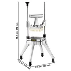 Commercial Vegetable Fruit Chopper The commercial vegetable chopper adopts heavy-duty aluminum alloy and reliable stainless steel material with one-time die-casting craftsmanship. The chopper body is sustained, solid, and odorless. This vegetable dicer is incredibly easy to operate. Simply load fruits or vegetables onto the blade assembly, and push down the ergonomic handle. Precise blade adopts imported stay-sharp food-grade 420J2 stainless steel. Vegetables and fruits can be chopped into 3/8-inch uniform dices in a fraction of the time. The blade assembly and the cutter head can be easily disassembled. All parts are washable, not easy to corrode, and rugged. Four feet covered with four rubber boots makes this commercial vegetable chopper stable enough, greatly enhancing the stability during its operation. Features & Details Stainless Steel & Aluminum: The commercial vegetable chopper is made of heavy-duty stainless steel and aluminum alloy, durable and corrosion-proof. The service life of the chopper is extended. Food grade 420J2 stainless steel blades ensure health and hygiene. 3/8" Blade Available: The commercial chopper is equipped with a 3/8"blade, which is sharp and sturdy. Each blade set also comes with two spare blades. You can use this cutter to cut vegetables and fruits according to your own needs. Ergonomic Handle: The ergonomic pull-down handle adopts the principle of leverage to save your labor and time. You can easily press the handle to cut the vegetables and fruits over the sharp blades. You can easily prepare French fries and vegetable salads with a commercial chopper without effort. Good Stability & Easy Cleaning: The four non-slip feet of the potato dicer are wear-proof, solid, shock-absorbing, non-slip, and odorless, which ensures stability and performance during operation. The blades and push block are both removable and washable, easy to clean and maintain. Multipurpose Vegetables Fruits Chopper: The heavy-duty chopper is very suitable for restaurants and home kitchens. It can be used to cut potatoes, carrots, cucumbers, and other vegetables and fruits. It is ideal for those who want to prepare vegetables and fruits for salads, French fries, and desserts conveniently and quickly.