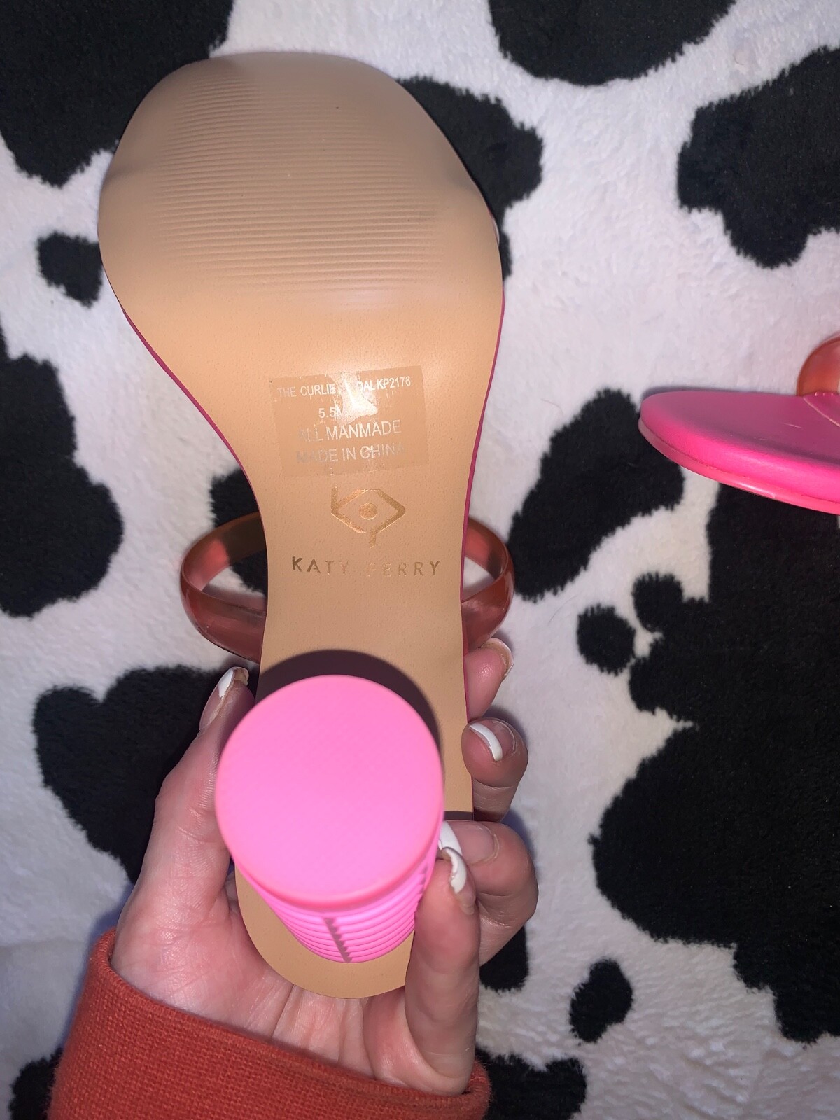 These pink heels by Katy Perry are absolutely adorable and surprisingly comfy! Perfect for a night out, they fit snug but still work for a small size 6. Barely worn, like new, and the price is a steal for such a stylish pair. Love the shiny finish—so fun and feminine! Get them before they’re gone!