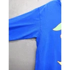 Adorable long sleeve t-shirt featuring a whimsical design of a cute frog reading a book while sitting on a snail, under a mushroom cap with a leaf overhead. The graphic is printed on a vibrant royal blue background. The shirt is made from 100% preshrunk cotton for comfort and durability. The design features a charming kawaii-style illustration in cheerful colors including green, pink, and brown. The shirt has a classic crew neck and long sleeve construction. In excellent condition with no visible flaws, stains, or wear. Measurements: Chest 18", Shoulder to Hem 25". Please compare the measurements to something you already own. Quick shipping from an experienced seller.