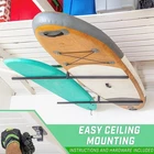 About this item HOME STORAGE SOLUTION: Fits 2 kayaks and 200 lbs; Reclaim floor space in the garage and get easy access to kayaks, standup paddleboards, or surfboards WILL IT FIT MY BOARD?: Fits a variety of size and shape kayaks and boards up to a total of 200 lbs (100 lbs per side); Features 30 inch wide arms and up to 19.5 inch ceiling clearance ADJUSTABLE HEIGHT: Extend the rack from 12.5 inches up to 19.5 inches from the ceiling, then set the height in place with our secure pin locking system ROBUST STEEL CONSTRUCTION: Features foam coated arms to protect your boards, a robust powder coated steel frame, and rigid 90 degree angled arms for maximum support and to resist sagging EASY DIY MOUNTING: Rotate the bracket mounts to line up with ceiling joists running in either direction; Universal design ensures flexibility for your desired mounting direction and location; Instructions and hardware included › Material: Alloy Steel Color: Black Special Feature: Lightweight Product Dimensions: 4.5"D x 5.7"W x 32.5"H Shelf Type: Hanging Shelf