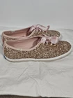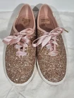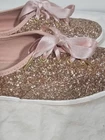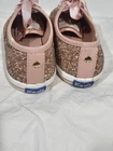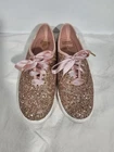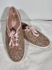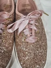 Elevate your sneaker game with these Keds Champion X Kate Spade glitter sneakers in a beautiful pink rose gold color. The shoes feature glitter fabric uppers with satin laces, adding a touch of glam to your outfit. The lace-up closure ensures a secure fit, while the non-slip and comfortable features make them perfect for walking and school activities. These athletic sneakers are part of the Keds Champion product line and are customized with no vintage wear. They are designed for women and come in a standard shoe width with a rubber outsole. The shoes are adorned with lovely pink glitter making them a perfect addition to your collection.