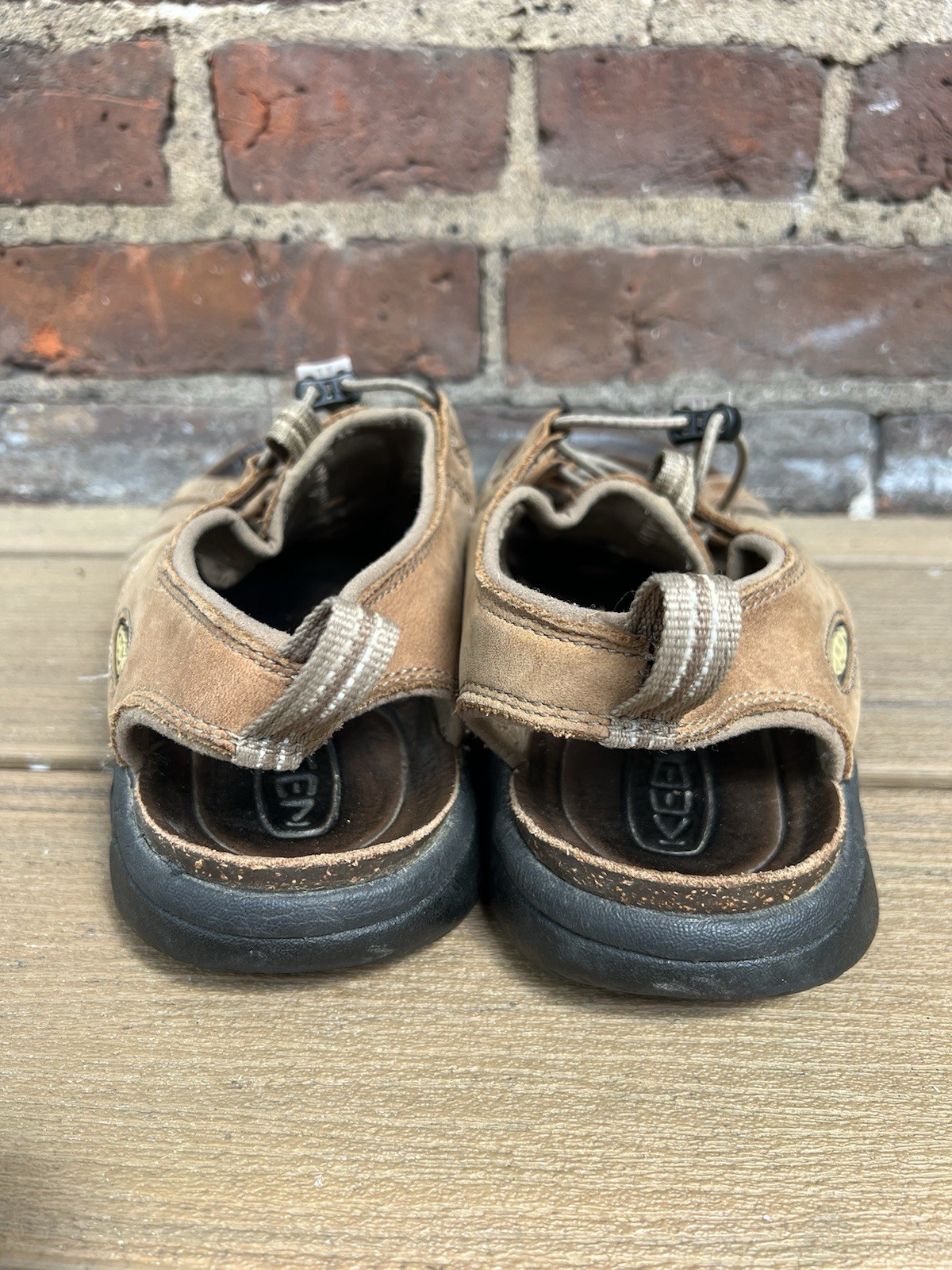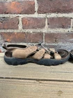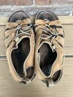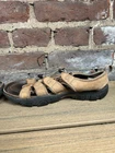 The Keen Daytona Cork Footbed Hiking Sandals are a stylish and durable option for outdoor activities. With a waterproof design and leather lining, these sandals are ideal for summer, fall, and spring adventures. The drawstring closure and solid brown color add a touch of functionality and classic style to the fisherman-inspired design. Made by the reputable brand Keen, these sandals are sure to provide comfort and support for your outdoor escapades. Fancier than your average keen sandal! Nice leather construction for comfort. Used condition with a bunch of life remaining.