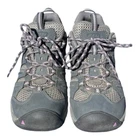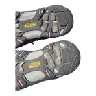 EUC, Keen Koven WaterProof Hiking Shoes in " Steel Grey / African Violet ", Women's size 8. Zero Treadwear on these. Enjoy KEEN® performance with waterproof comfort on the trail with the Koven Waterproof Hiking Shoes for Ladies. Waterproof synthetic uppers give hikers ventilated support and protection over trails, thanks to quick-dry linings and KEEN.DRY waterproof/breathable technology inside. Underfoot, the Koven's removable polyurethane insoles and EVA midsoles cushion and support your feet over any trail. The Koven also features KEEN's heel capture system and stability shanks under the feet for extra stability over uneven terrain. Non-marking KEEN.ALL-TERRAIN rubber outsoles feature 4mm multi-directional lugs for superior traction over changing trail terrain. Speed lace webbing system. Odor-control treatments to resist odor. Manufacturer style #: 1025157. Great trail performance with everyday comfort Waterproof synthetic uppers Quick-dry linings KEEN.DRY waterproof/breathable technology Removable polyurethane insoles Shock absorbing EVA midsoles - supports and cushions Heel-capture system and stability shanks for added stability over rough, uneven terrain KEEN.ALL-TERRAIN rubber outsoles - 4mm multidirectional lugs Proven toe caps for added protection