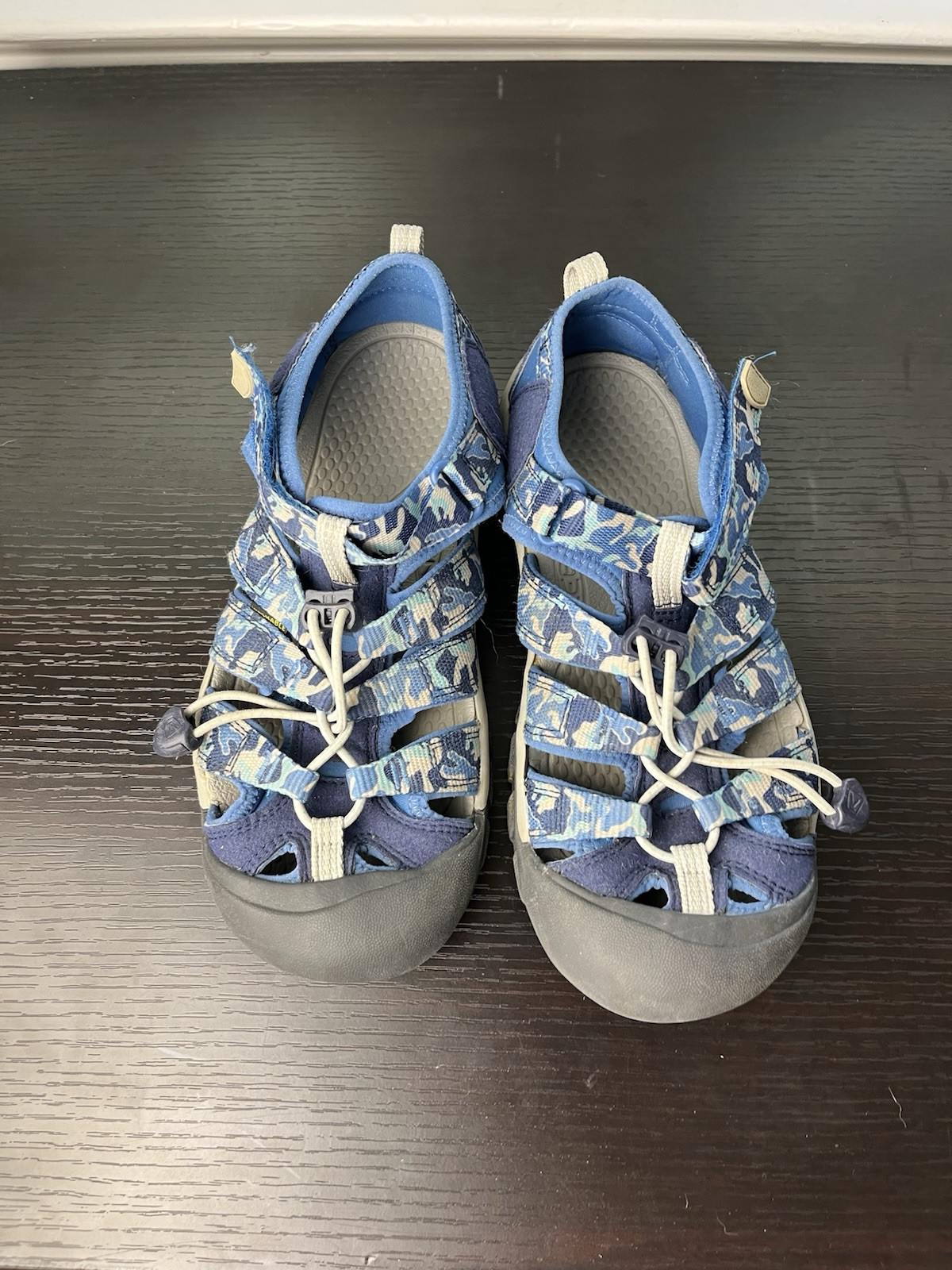 Explore the outdoors with confidence in these Keen Newport H2 sandals, designed for women who seek both style and function. These size 5 navy blue sandals boast a robust waterproof synthetic upper, complemented by a practical lace-up closure for a secure fit. The versatile flat rubber outsole provides excellent traction, making them ideal for hiking, travel, or casual wear. The quick lace feature ensures a snug and comfortable experience, while the durable rubber insole offers day-long comfort. Perfect for the changing demands of fall, spring, and summer, these sandals are ready to accompany you on every adventure. The camo pattern adds a touch of outdoor flair, making these shoes a stylish and capable companion for your active lifestyle.