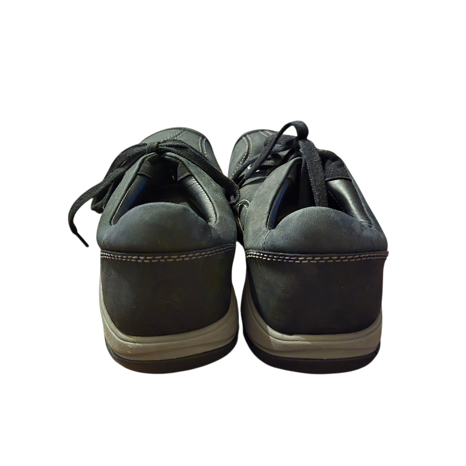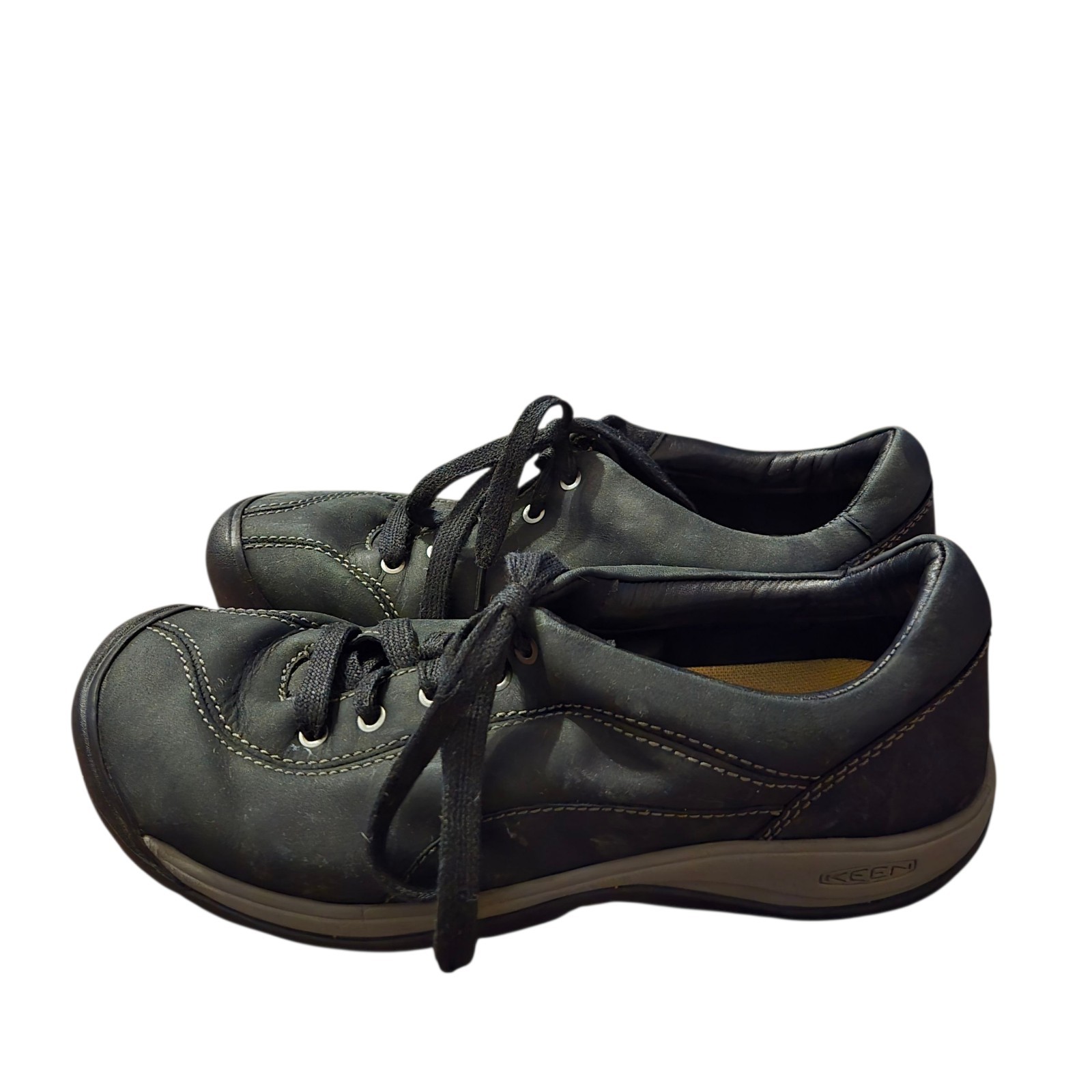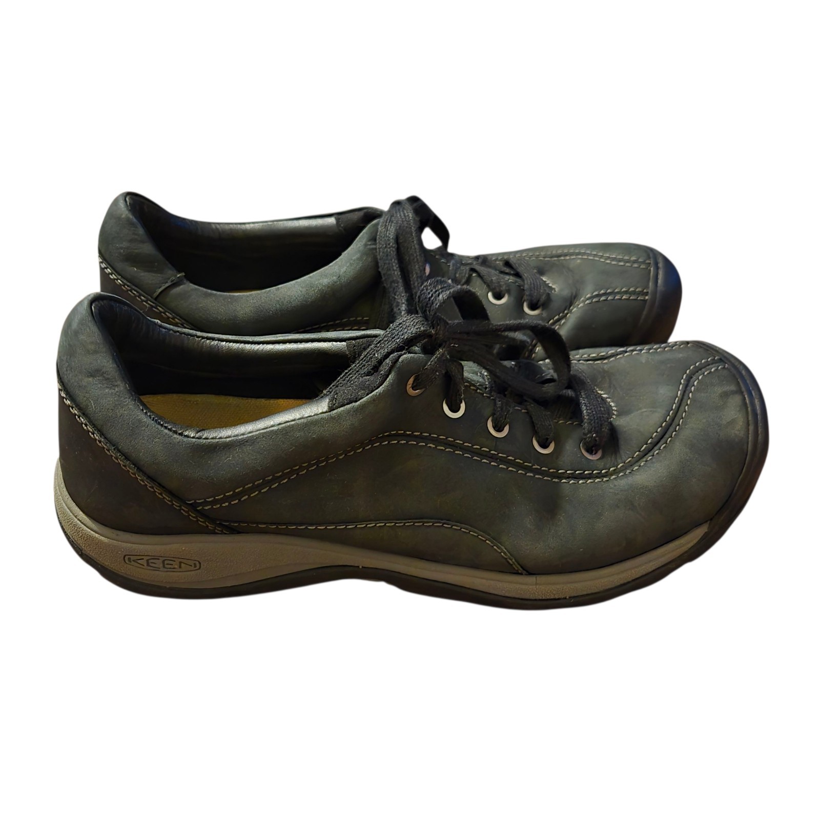 The Keen Black Steel Gray Walking Shoe in size 9 is a versatile and stylish sneaker designed for women who value both comfort and functionality. Made with nubuck upper material, this shoe provides durability and a unique texture. The gray color adds a modern touch to the classic design, while its athletic style and walking performance make it a practical choice for active women on the go. With the trusted Keen brand name, this shoe combines quality craftsmanship with a sleek and practical design.