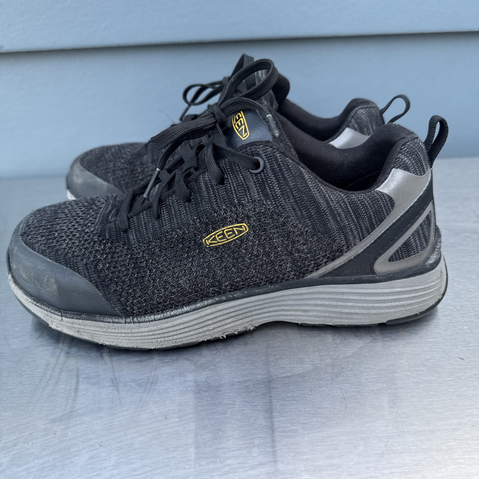 I. Fair preowned condition. Has some significant wear on outsoles and on edges of sole foam. Alloy toe still in good shape. (All pictured) Please be sure to review all photos prior to purchasing and feel free to message me with any questions. Thanks! :)
