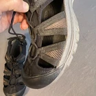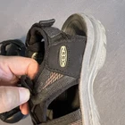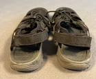 *Please review all photos closely before purchasing due to sandals having signs of use and wear with some fading to exterior fabric and some stains to rubber sidewalls and heel as well as some wear and debris on sandal bottoms from being preowned to prevent return.* The Keen Venice II H2 Waterproof Hiking Sandals in women's size 7.5 black are a versatile and durable option for outdoor activities. Featuring a drawstring closure and flat heel, these sandals are designed for both activewear and casual occasions. Constructed with waterproof leather uppers and a rubber outsole, they are perfect for hiking in the summer season. The KEEN brand is known for quality footwear, making these sandals a reliable choice for outdoor enthusiasts. Hike Camp Beach River Lake Vacation Travel Adventure Non Slip Waterproof Durable Original Hook And Loop