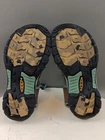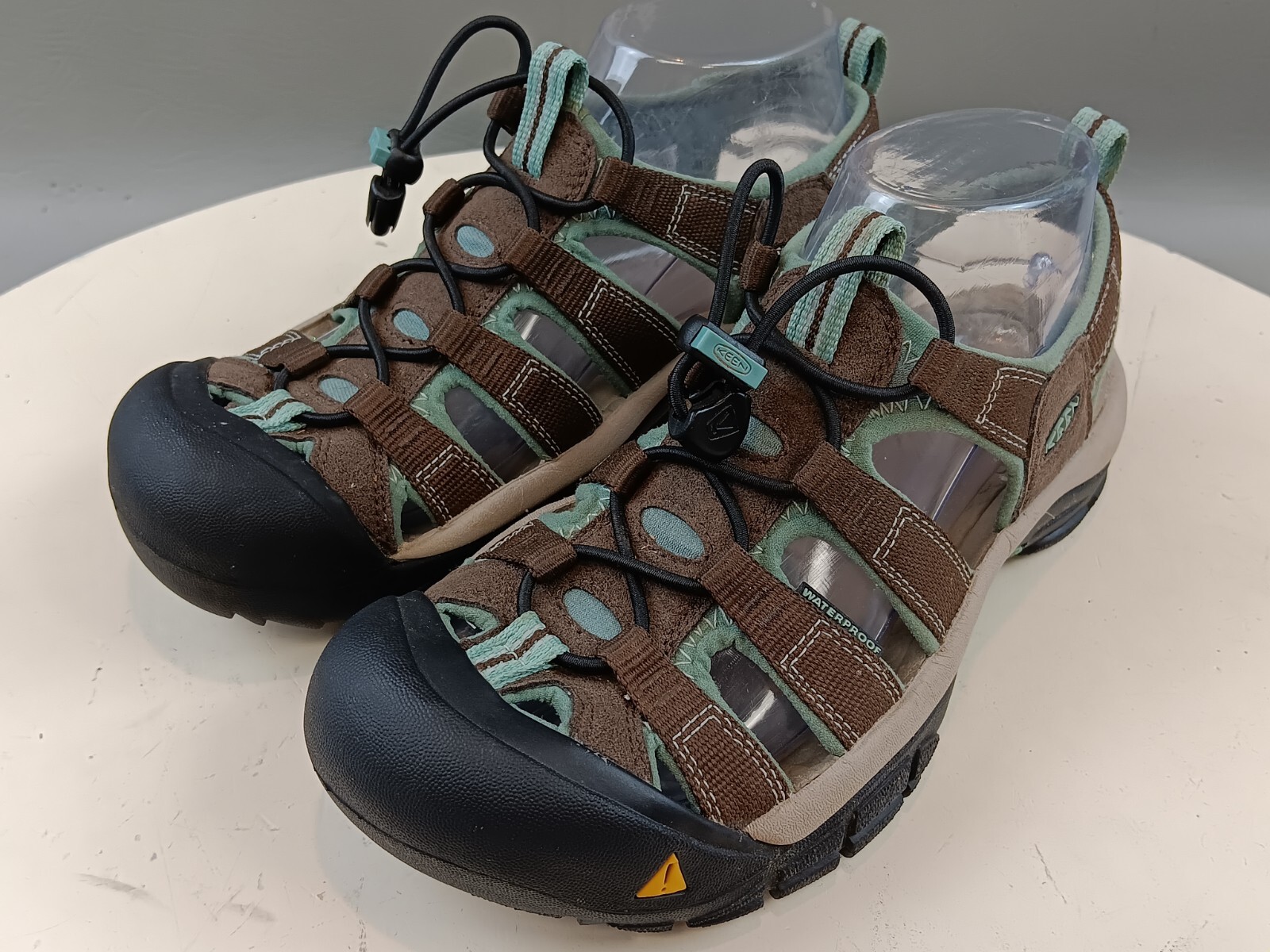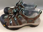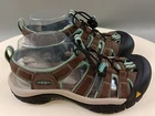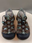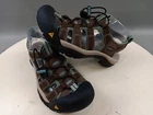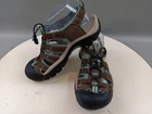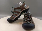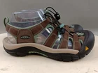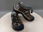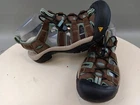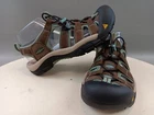 These Keen sandals are perfect for any outdoor activity. With a drawstring closure and flat heel, they provide both comfort and support. The waterproof polyester upper material ensures your feet stay dry, even in wet conditions. These multicolor sandals feature a KEEN logo accent and are lightly used, making them an excellent choice for anyone looking for a high-quality pair of sandals. Whether you're hiking, camping, or just out for a walk, these sandals are sure to keep your feet comfortable and stylish.