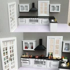 Keenso 1:12 Mini Dollhouse Kitchen Cabinet Set Simulation Life Scene Modern Wood Craftsmanship Dollhouse Decoration DIY