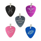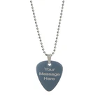 Custom Made Double Sided Full Vibrant Color Light Weight Aluminum Pendant GUITAR PICK Dog tag with 24" Military Ball Chain This Guitar Pick dog tag is not cheap and NOT A dull sublimation dog tag. We can print your logo, name, initials or whatever the message that you want us to etch it in! Guitar Pick Measures: 29mm X 33 mm (1.14" X 1.3") Chain Measurement: 24" Stainless Steel Ball Chain Colors to choose from: Hot Pink, Black, Blue, Purple or Pewter FRONT SIDE PERSONALIZATION ONLY BACK SIDE CAN BE DONE AT EXTRA $8 AFTER YOU PURCHASE THE ITEM WE NEED BELOW INFORMATION FOR YOU: 1. MESSAGE, WORDS, INITIALS, NAMES, OR LOGO THAT YOU WANT US TO ETCH OR IF YOU WANT US TO DO LIP PRINT; PLEASE SEND US THE SCAN PICTURE OF YOUR LIP PRINT OR WE CAN PRINT ONE JUST LIKE PICTURE! HOW TO DO LIP PRINT: PUT ON RED LIPSTICK SO IT CAN STAND OUT GOOD KISS IT ON THE PAPER THEN SCAN IT WITH YOUR SCANNER TO SEND THE PICTURE 2. Color of Dog Tag you want us to put it on if you do not choose then we'll choose one for you ***** PLEASE DO NOT PLAY GUITAR TO KEEP PROLONG LIFE OF THIS PENDANT ******* We may display your fully made item on our eBay and our other websites for sample purpose only (not for sale). If you don't want us to display your case, please let us know. *Licensed Logos, Trademarks, and Professional Pictures are Prohibited without Permission* *Above pictures are super magnified. Actual item can be smaller or bigger than the picture* (Since it is super magnified little scratches/ holes might not even noticed with naked eye.) Thank you. Colors may be vary depending on your monitor FOR INTERNATIONAL BUYERS: CUSTOMS TAX IS BUYERS RESPONSIBILITY