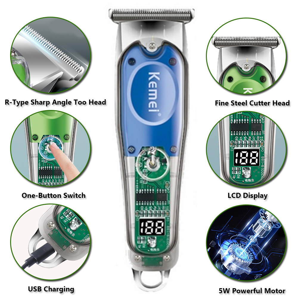 Product details: 1 Using high quality steel, sharp and durable. 2: limit comb * 3 3: The R-type blade detangle safely, cuts hair easily and does not hurt the skin. 4: waterproof design, easy to clean. 5: Large capacity lithium battery can work up to 120 minutes. Name: hair clipper Model: KM-322 Blade material: stainless steel Color : Green/Blue Net weight: 125g Usage time: 120 minutes Charging time:2 hours Voltage: 100-240V Power:5W Power Mode: Universal USB Cleaning method: knife head can be washed Package Weight: 285g Package size: 18.5*8.3*5.8cm Due to transportation problems, our products do not carry any oil bottles. Please understand the inconvenience caused. If you have any product problems or after-sales problems, you can contact our customer service in advance and we will help you solve the problem.