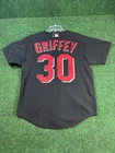Show your love for the Cincinnati Reds with this officially licensed Mitchell & Ness Ken Griffey Jr. button-front jersey. The black jersey features the Reds' logo on the front and Griffey's name and number on the back. It's made from high-quality materials and is perfect for any baseball fan, whether you're watching the game at home or in the stands. This men's size M jersey is a must-have for any Reds fan who wants to show their support for the team. It's a great addition to any collection of fan apparel and souvenirs. Get yours today and be ready for the next game! 4230