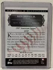 Pick the cards you need to complete your set. Ken Griffey Jr 2007 Topps Card # 47 Moments & Milestones 1997 American League MVP 185 Hits. Topps came out with these in 2007 commemorating Ken Griffey Jr and his 185 hits during his 1997 MVP season. There were 185 cards made from hits 1-185 and only 150 cards were made for each hit. The cards are serial numbered 001/150. They are very rare and hard to come by. These cards were removed directly from new packs and immediately put into sleeves and protective card holders. Every card in this lot is in Mint/Near Mint condition. Please see photos of each and every card in this lot listed. I have been collecting Ken Griffey Jr memorabilia for many years but was never able to finish this set. This listing lot may be able to help you complete yours. Everything I sell has FREE SHIPPING so no extra for the lucky buyers there. I do not give discounts for purchasing multiple cards. The price you see for each card is the price whether you buy 1 or 10 or all. If it was that cheap and easy I would finish the set for myself. Lol