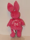 This plush 1999 beanie bunny is new with the tag from Salvino's Bammers and is part of unsold inventory from a store that has closed. It stands about 9" and is dark pink with embroidered name and number. It is made of acrylic fiber and stuffed with plastic pellets so it is not recommended for children under 3 years of age. Please note that I have listed other bunnies in this series. You can visit my eBay store to check out the other items. Please send any questions. I try to ship all orders within one business day after payment. Shipping is combined on multiple items if you message me for a corrected invoice before you pay. Thanks for viewing.