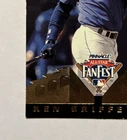 1997 Pinnacle FanFest is a 21-card set distributed at the All-Star Game's FanFest held in Cleveland, Ohio, July 4-8, 1997 at the Convention Center. Each attendee received a three-card pack with each admission. FF1 Frank Thomas FF2 Jeff Bagwell FF3 Chuck Knoblauch FF4 Craig Biggio FF5 Alex Rodriguez FF6 Chipper Jones FF7 Cal Ripken, Jr. FF8 Ken Caminiti FF9 Juan Gonzalez FF10 Barry Bonds FF11 Ken Griffey, Jr. FF12 Andruw Jones FF13 Manny Ramirez FF14 Tony Gwynn FF15 Ivan Rodriguez FF16 Mike Piazza FF17 Andy Pettitte FF18 Hideo Nomo FF19 Roger Clemens FF20 Greg Maddux Card #FF21 (an etched foil card) packed out as a redemption. The card itself could only be obtained at the locations listed on the card's back. This card is in absolute perfect condition and is a unique peice to add to any collection. View my listing page to find the remainder of the set and complete the unbelievably star studded line up while supplies last. These cards have never been Used or Circulated. They are in Mint Condition. Your delivery will arrive by USPS Ground between 3 and 5 business days after your order has been placed. The item(s) will be placed into Penny Sleeve(s), Top Loader(s), and secured into Team Bag(s) before being placed into a Bubblewrap envelope or cardboard box to ensure a flawless delivery. Feel free to reach out with any questions or comments you may have. Thank you for viewing our listing and enjoy the newest edition to your collection! Ken Griffey Jr FF11 of 21 - 1997 Pinnacle All-Star FanFest Independence Day RARE