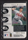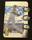 This trading card features Ken Griffey Jr of the Seattle Mariners fand Greg Maddux from the 1997 Donruss set. The card is a rare die cut insert with a foil design, numbered 1 out of 16. Individually serial numbered #1435/3500. It is a valuable piece for any collector interested in Major League Baseball cards, especially those featuring two iconic, Hall of Fame, players like Ken Griffey Jr. and Greg Maddux Shipping will be swift and secure and can be combined with other listings for your savings.