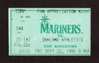 Ken Griffey Jr HR #187 (Hall of Fame) Edgar Martinez HR #91 (Hall of Fame) Mark McGwire HR #273 Vince Coleman HR #27 (1st Grand Slam) Rickey Henderson SB #1149 (Hall of Fame) Alex Diaz HR #4 September 22, 1995 Seattle Mariners vs Oakland Athletics at The KINGDOME in Seattle, WA Ticket Stub Excellent Condition (No Creases) Aisle 104 - Row 23 - Seat 103 You get the exact ticket shown in the photos