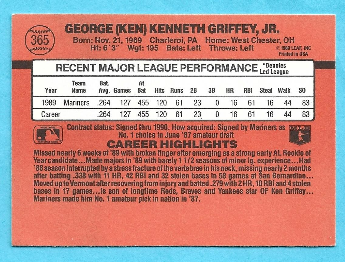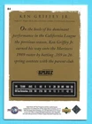KEN GRIFFEY JR. BasebalI Inserts & Parallels Shipping in the United States is $1.50 for the first item and free for any additional items in any of my Complete Your Set categories, any cards shipped outside the United States is $15.00 per order and this covers all cards purchased. If you need additional pictures of a card or have any questions please feel free to e-mail me. Thanks, Derek If your looking for some more Ken Griffey Jr. cards please check out my other three you pick listings of Ken Griffey Jr. for more cards!!!