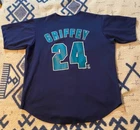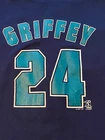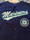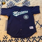 Length 29.5” Pit to pit 23” A few small thread pulls and marks. (See pics) Get ready to show off your love for the Seattle Mariners with this vintage Ken Griffey Jr. jersey from the 90s. Made for true fans like you, this unisex adult jersey is in size L. The jersey also proudly displays the player's name and number on the back, making it the perfect addition to your fan apparel collection. This officially licensed MLB product is perfect for anyone who wants to relive the glory days of the Mariners and the World Series. Whether you're a die-hard fan or simply want to show your support, this jersey is a must-have. Don't miss out on the chance to own this piece of baseball history.