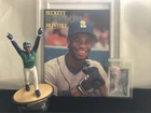 This lot of memorabilia features exclusive, rookie, and insert cards of Ken Griffey Jr. from the Seattle Mariners. The cards are made of card stock, paper, and plastic materials and were manufactured by Topps in 1990. The vintage cards are perfect for any Major League (MLB) baseball fan and collectors alike. The lot includes one card with no autograph and is categorized under Sports Mem, Cards & Fan Shop and Sports Trading Cards. Don't miss out on the chance to add these rare cards to your collection. Wear on back of statue and crease on RH corner of rookie year Beckett magazine. Please look at pictures. Thank you