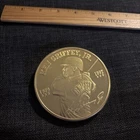 This Ken Griffey, Jr. One Pound Proof is struck from 5,760 grains of pure copper and is layered with 24k Fine Gold. It measures a full 3 ½ inches in diameter. There is some tape residue on the plastic. Does not come with COA.