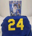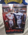 Fetch a father & son calling star with this family-friendly ManCave bundle, featuring: One original 1989 Costacos poster - one of the iconic posters from an era full of iconic posters, unused (NEVER DISPLAYED) and in original excellent condition with the original folds still in place. One Mitchell & Ness 1990 Junior Seattle Mariners authentic blue batting practice jersey, unworn with original tags and made of 100% lightweight polyester mesh with fully embroidered graphics on the front & back. MENS SIZES M-5XL AVAILABLE, SO CONTACT US DURING PURCHASE TO CHOOSE YOUR SIZE. BE AWARE THESE JERSEYS RUN SMALL. One 1997 Classic Doubles Starting Lineup featuring father & son in Near-Mint condition or better. One 1989 Donruss Rated Rookie card, raw & ungraded. LAST SECOND ADDITION NOT IN THE MAIN PICTURE: a 1991 Starting Lineup base-set figurine for both Griffeys in their Mariners uniform (see listing photos)