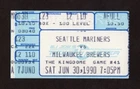 This is an Original 100% Authentic Full VIP Ticket from the 1990 MLB Season June 30, 1990 Seattle Mariners vs Milwaukee Brewers at the KINGDOME in Seattle, WA. 6/30/1990 LOW ATTENDANCE 26,746 RARE TICKET!!! "THE BRAWL" at the KINGDOME!!! 6 PLAYERS EJECTED - SURHOFF, SHEFFIELD, SEBRA, SCHAEFER, JONES, HARRIS MARINERS WIN 6-2 KEN GRIFFEY JR. "The Kid" (HOF) RANDY JOHNSON "Big Unit" (HOF) EDGAR MARTINEZ "Gar" (HOF) JEFFREY LEONARD "HacMan" MULTI HR #142, 143 (LAST HR on the ROAD) ROBIN YOUNT "The Kid" HR #215 (HOF) GARY SHEFFIELD "Sheff" - EJECTED DAVE PARKER "Cobra" BOB SEBRA LAST GAME - EJECTED M's-Brewer brawl a doozy SEATTLE -- It has become an expected part of every Milwaukee-Seattle series over the last two seasons. The two teams get together, play some baseball and fight. "We don't like them and they don't like us," second baseman Harold Reynolds said. "And tonight didn't change a thing." Saturday, eight innings into the seventh meeting of the season between the teams, a fight broke out that rivaled any ever seen in Seattle -- and that includes most fight cards. Eight players were ejected, four from each side, after Bob Sebra hit the Mariners Tracy Jones with a fastball. "I was yelling at him on my way to first base when (catcher B.J.) Surhoff said 'What if he did hit you on purpose?' That bleeped me off." So Surhoff and Jones started what became a 22-minute brawl that spilled from home plate to the pitching mound, toward first base and eventually into the right-field bullpen. "I tried to get Gene Harris out of there, down into the bullpen," said Jeffrey Leonard, "and when I turned around there were about 50 guys running after us. I said 'Damn, this trouble.'" It was. Down near the right-field corner, tempers flared again and Milwaukee manager Tom Trebelhorn, among others, came out with a torn uniform and sour disposition. "It's not over," he said, afterward. "Treb didn't go out there to talk," said Milwaukee coach Don Baylor. "He went out there to mix it up." Before it was over, most players on the field had mixed it up -- several times. Among the best matchups: pitchers Ron Robinson and Harris; Dave Parker vs. Pete O'Brien -- "I said, 'Oh, hell, how did I get matched up with you," O'Brien said later -- Randy Johnson and Jim Gantner; Jeff Schaefer and approximately five Brewers. "Big men with big egos love to hit the little guy," said Schaefer, who stands 5-foot-10 and hits back. M's Manager Jim Lefebvre came out of the dugout trying to regain some order on the field, but quickly got into the spirit. "If they want to fight, we'll fight," Lefebvre said. "I didn't appreciate their comments, neither did our players. I'd rather play baseball, but if it gets ugly, we'll hold our own." Brian Holman and Johnson, teammates since minor-league days, might have worked best together Saturday -- they stood back-to-back and took on all comers. "There were some blows being thrown," Johnson said. "You just didn't want to get blindsided." This is a fight that has some backstory. Way back in a Spring Training game in 1989, Brewers shortstop Bill Spiers slid hard into home -- harder than was necessary for a Spring Training game, many felt -- landing Mariners catcher Dave Valle on the injured list and causing a very rare Spring Training benches-clearing brawl. Flash forward to a game at the Kingdome in 1990. The erstwhile Seattle Pilots were trailing 5-2 in the eights, and Brewers reliever had given up a homer and a double before catching Mariners left fielder Tracy Jones in the ribs. What stars with some light jawing quickly devolves into the benches clearing and punches being thrown. Interestingly, at one point in the video you can see Dave Valle, apparently having made a full recovery, holding back a Brewer. Probably the most famous participant in this fight wasn't a Brewer nor a Mariners, but 79-year-old Agatha Doman, a pastor's daughter who objected to a Brewers player pinning first baseman Alvin Davis to the wall beneath her seat and bopped the offending player over the head with her handbag. ULTRA RARE TICKET STUB IN EXCELLENT CONDITION!!! You get the ticket in the photos. Slight crease top right corner, Nice ticket stub!!! Ticket measures approximately 2 x 3-1/2 Inches Aisle 123 - Row 12 - Seat 110 Photos/Scans have been watermarked for auction purposes only. Ticket will be shipped in the Ticket Toploader (Hard Plastic Holder) shown in the photos. It will be protected and surrounded by 2 pieces of rigid cardboard and sent via USPS with tracking. For multiple ticket orders add items to cart for combined shipping.