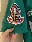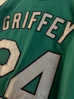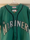This listing is for a Ken Griffey Jr. Seattle Mariner’s jersey. This jersey is a size Men’s Medium and the color is teal. It has a throwback design with a Negro League 75th Anniversary patch on one sleeve and a Seattle Mariner’s patch on the other. The decals, letters and numbers on this jersey are all stitched (not iron on) and made with high-quality materials, ensuring longevity and durability. It features Griffey's name and the number 24 on the back in silver stitching and the Mariners logo on the front, making it a great addition to any sports memorabilia collection. This item comes from a non-smoking home. Please feel free to message me with any questions or requests for additional photos.