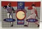 BARRY LARKIN / KEN GRIFFEY JR. 2001 UPPER DECK GOLD GLOVE BASEBALL OFFICIAL ISSUE AUTHENTIC 2 COLOR GAME-USED BASEBALL INSERT CARD #OI-LG (SEE PICS) AND SHIPPING IS $4.99 FOR PADDED SHIPPING [INTERNATIONAL ORDERS ADD 30.99 FOR PADDED SHIPPING NO EXCEPTIONS ] CHECK MY CURRENT AUCTIONS TO SAVE ON SHIPPING... SHIPPING IS $0.50 FOR EACH SINGLE CARD PURCHASED AFTER THE FIRST (LOTS ARE MORE)... PAYMENT IS DUE WITHIN 7 DAYS OF THE AUCTIONS END... PLEASE EMAIL ME WITH ANY QUESTIONS... THANKS, $GURU$ Sign up for my email newsletters by adding my eBay Store to your Favorites! Check out my other items - opens in a new window or tab ! Be sure to add me to your favorites list - opens in a new window or tab !