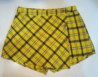 The Kendall & Kylie Mini Skort in Women's Size Small is a vibrant yellow plaid skirt with a side zip closure. Perfect for casual occasions in the summer and spring, this lightweight skort features a mid-rise and short skirt length, accented with buttons and zippers. Made from a blend of cotton and polyester, this mini skort embodies a skater girl style with a touch of American and 90s theme. Easy to care for with gentle machine wash, no bleach, and no tumble dry.