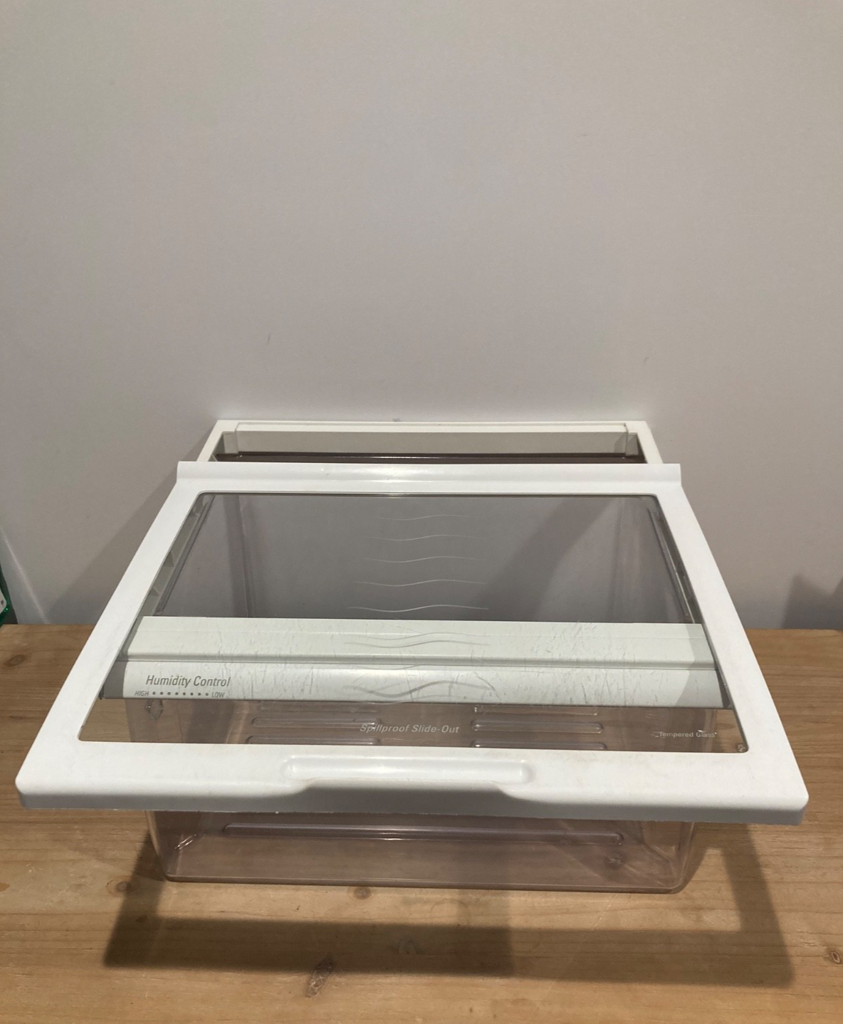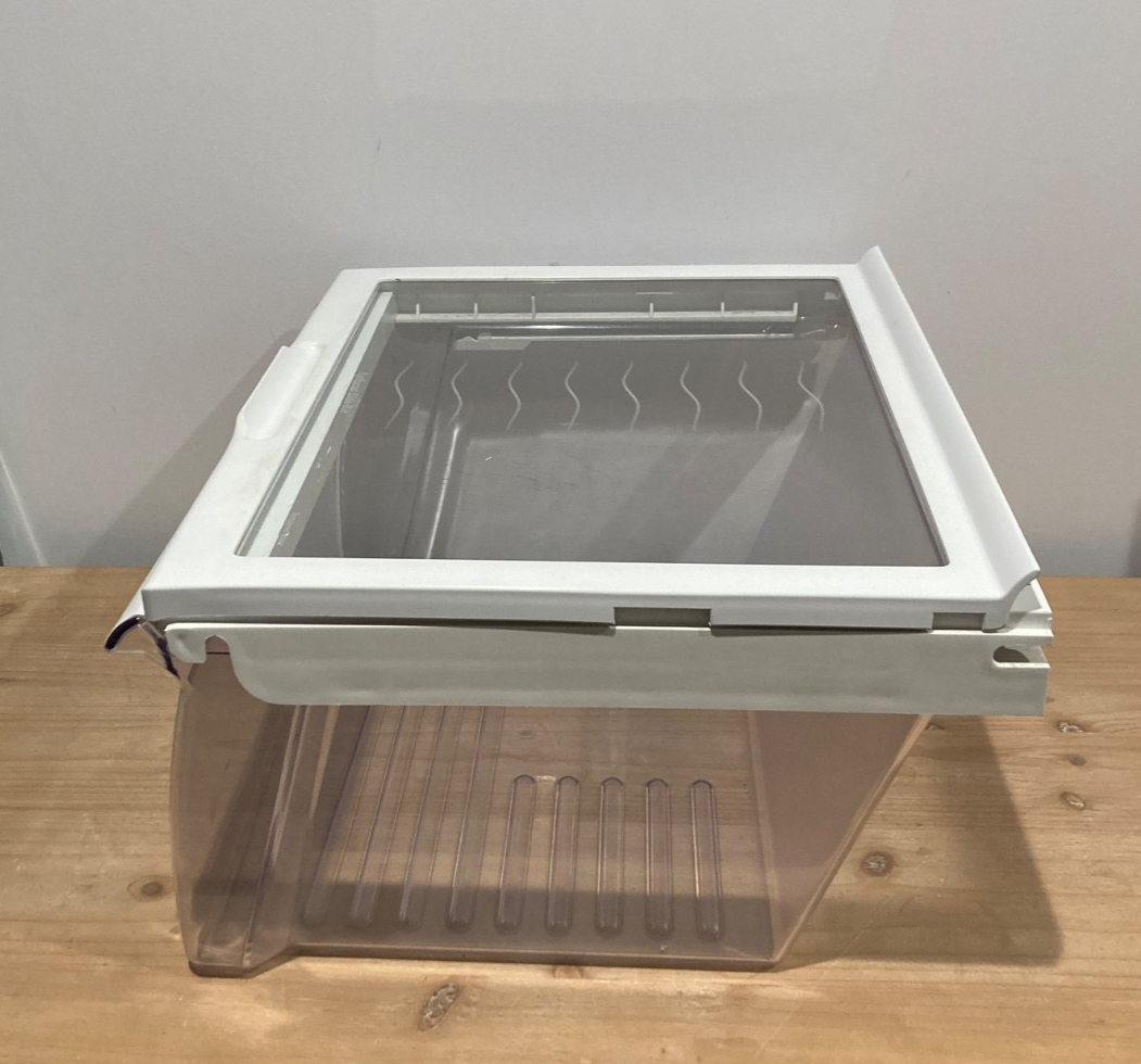 Kenmore Crisper Drawer with Humidity Control, Part # WP2188656 (replaces part # 2196160). Also comes with Crisper Drawer Pan Cover, Part # 2179394 (this is the white frame in between the drawer and the pull-out glass shelf) and a pull-out Glass Shelf, Part # 999527. See third photo above for the pull-out form of the glass shelf. This was pulled from Kenmore model # 10659502993 but is suitable for certain models of Kenmore, Whirlpool, Kitchenaid, Roper, and Maytag brands. Please check to see if this part is compatible with your model.