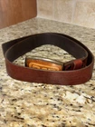This is a unique Kenneth Cole Reaction leather belt featuring a rugged CAT Diesel Power buckle. Crafted from genuine leather, this belt is marked as a size 36/90 and handcrafted in China. The belt’s quality design and the bold CAT Diesel Power logo on the buckle make it a standout accessory, ideal for CAT enthusiasts or collectors. The leather shows light wear, adding vintage charm. Please refer to the photos for more details on the buckle and belt condition.