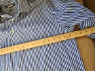 This is a men's dress shirt from Kenneth Cole Reaction in size Large. It features blue and white stripes, a collared neckline with a button-down style, and long sleeves with button closures. The shirt is made of 100% cotton and has a regular fit. The model is classic and the shirt was made in Bangladesh.