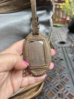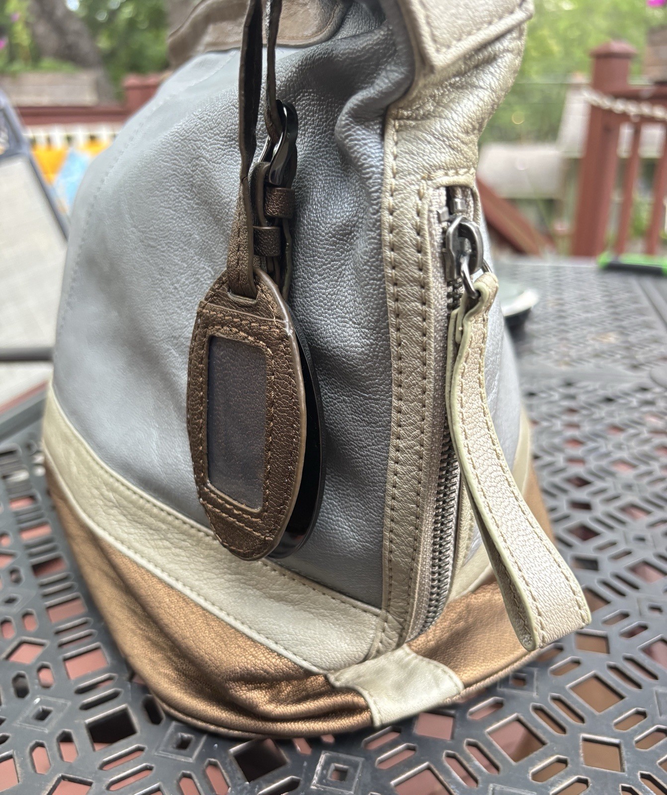 The Kenneth Cole Reaction Color-Block Leather zip One Handle Shoulder Handbag Purse is a stylish and classic women's accessory. Made from leather with a rectangular shape, this shoulder bag features a zip closure and a multicolor exterior with solid patterns. It includes inner and side zipper pockets for added functionality. The tan shoulder strap adds a touch of elegance to the overall design, making it a perfect choice for a classy and sophisticated look. The purse features a detachable keychain/luggage tag. This bag has been used very minimally and is in great condition! Minor stain on lining. See photos.