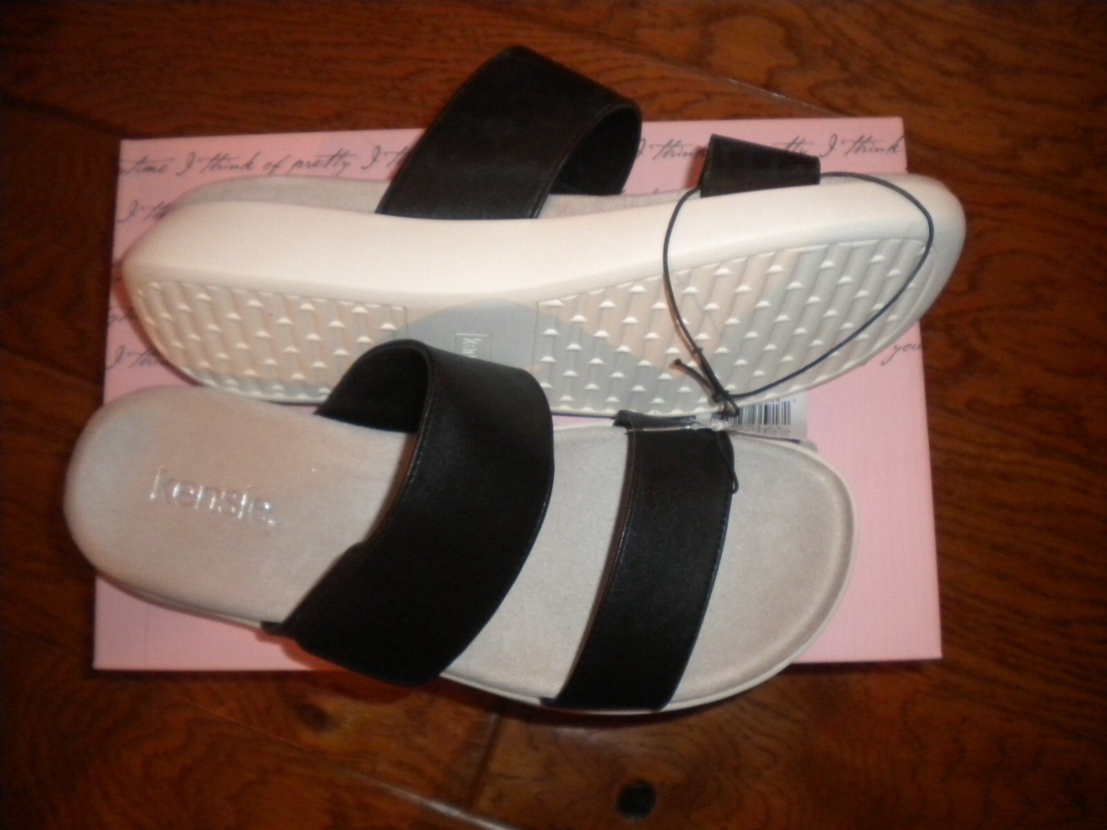 New with box. Kensie Women's Size 11 Jipsy Black Adjustable FIt Sandals NWB Slip on. Adjustable strap. Arch Support. Heel about 1". Length along the bottom about 11 3/4". Weighs about 2b 1oz. Will ship in box with bag. Buy with Confidence I have over 25,000+ Positive Feedbacks. Measurements are approximate and can vary depending on where they start and end. I cannot guarantee fit but I try and give as much information as possible to help you make a great Purchase. Shipping is based upon weight (which I provide in all listings) and the Shipping Option you choose, 4 options are available. The shipping offered is my Discounted Rate passed onto you the Buyer. Shipping daily. Please understand that I do my best to describe color. I can't guarantee that my Color will be your exact Color since Monitors and Opinions Vary. Offers are considered on certain items, use the "Best Offer" button. Sorry, I DO NOT ACCEPT RETURNS, feel free to ask questions. Each month I select a Charity to Donate to for many of my listings. I try to use recycled Shipping Materials whenever possible. Your Business is appreciated and if you like what you see, browse my Store to find more items you will love. Add me to your Favorites as New items are added Daily. Thank you! b5