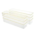 Menu 1. We require immediate payment. 2. We currently accept payment via eBay managed payments only. 3. Once payment is cleared, we will dispatch your shipment within 1-3 business days. Please refer to the "Shipping" tab for more information regarding shipping speed to your destination. Kerry Plastic Stackable Office Desk Drawer Organizers, 12" x 3", 6 Pack, with Gold Trim Product description Storage and organization can be beautiful as well as functional with this set of six 12" x 3" Kerry Desk Drawer Organizers Modular stack and slide design allows for multiple configurations both in-drawer and on the desktop for a custom fit Premium crack resistant and BPA free plastic composition with elevated gold trim Non-Slip feet keep each piece perfectly in place for tidy surfaces Dimensions (6) - 3"W x 12"D x 2"H PLEASE MESSAGE US IF YOU HAVE ANY OTHER QUESTIONS, AND MANY THANKS FOR READING ALL OF THIS. Copyright ©#. All Rights Reserved.