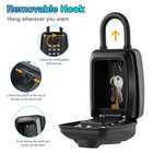 About this item 【HIGH SECURITY】- Key lock box can be set with a code of 1-12 digits at will. Provides more combination possibilities than many general 4-digit passwords on the market, so it’s harder to crack and has higher security. 【STURDY & DURABLE】- The key storage box made of high-strength zinc, aluminum alloy and heavy-duty stainless-steel material, enough to withstand hammered, sawed and pried, has a long service life, keeps your key safer. 【RAINPROOF & DUSTPROOF】- The key hider lock box comes with removable cover shields and a removable hang ring, which can effectively protect from rain, snow and sun. You can securely hang this key lock box on a doorknob, fence and anywhere you want, no need to put the keys under the carpet or flower pot. Key lock box for outside suitable for indoors and outdoors, such as garage doors, wardrobes, offices and schools. 【LARGE CAPACITY】- The security lock box size: 4.76*3.78*2.44 inches, it has ample storage space, a built-in key hook, which can hold multiple keys or other small things like ID cards, access cards, car keys, etc. Perfectly for family members, realtors, current students, office staff, pet sitters. Note: This "C" button means cancel, so you can re-enter the password if you entered it incorrectly. Specification: Material: Aluminum alloy + ABS. Weight: 650g. Color: black. What do you get? 1 x security key box 1 x User manual 1 x Screwdriver 1 x Packing box