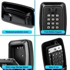 About this item 【HIGH SECURITY】- Key lock box can be set with a code of 1-12 digits at will. Provides more combination possibilities than many general 4-digit passwords on the market, so it’s harder to crack and has higher security. 【STURDY & DURABLE】- The key storage box made of high-strength zinc, aluminum alloy and heavy-duty stainless-steel material, enough to withstand hammered, sawed and pried, has a long service life, keeps your key safer. 【RAINPROOF & DUSTPROOF】- The key hider lock box comes with removable cover shields and a removable hang ring, which can effectively protect from rain, snow and sun. You can securely hang this key lock box on a doorknob, fence and anywhere you want, no need to put the keys under the carpet or flower pot. Key lock box for outside suitable for indoors and outdoors, such as garage doors, wardrobes, offices and schools. 【LARGE CAPACITY】- The security lock box size: 4.76*3.78*2.44 inches, it has ample storage space, a built-in key hook, which can hold multiple keys or other small things like ID cards, access cards, car keys, etc. Perfectly for family members, realtors, current students, office staff, pet sitters. Note: This "C" button means cancel, so you can re-enter the password if you entered it incorrectly. Specification: Material: Aluminum alloy + ABS. Weight: 650g. Color: black. What do you get? 1 x security key box 1 x User manual 1 x Screwdriver 1 x Packing box