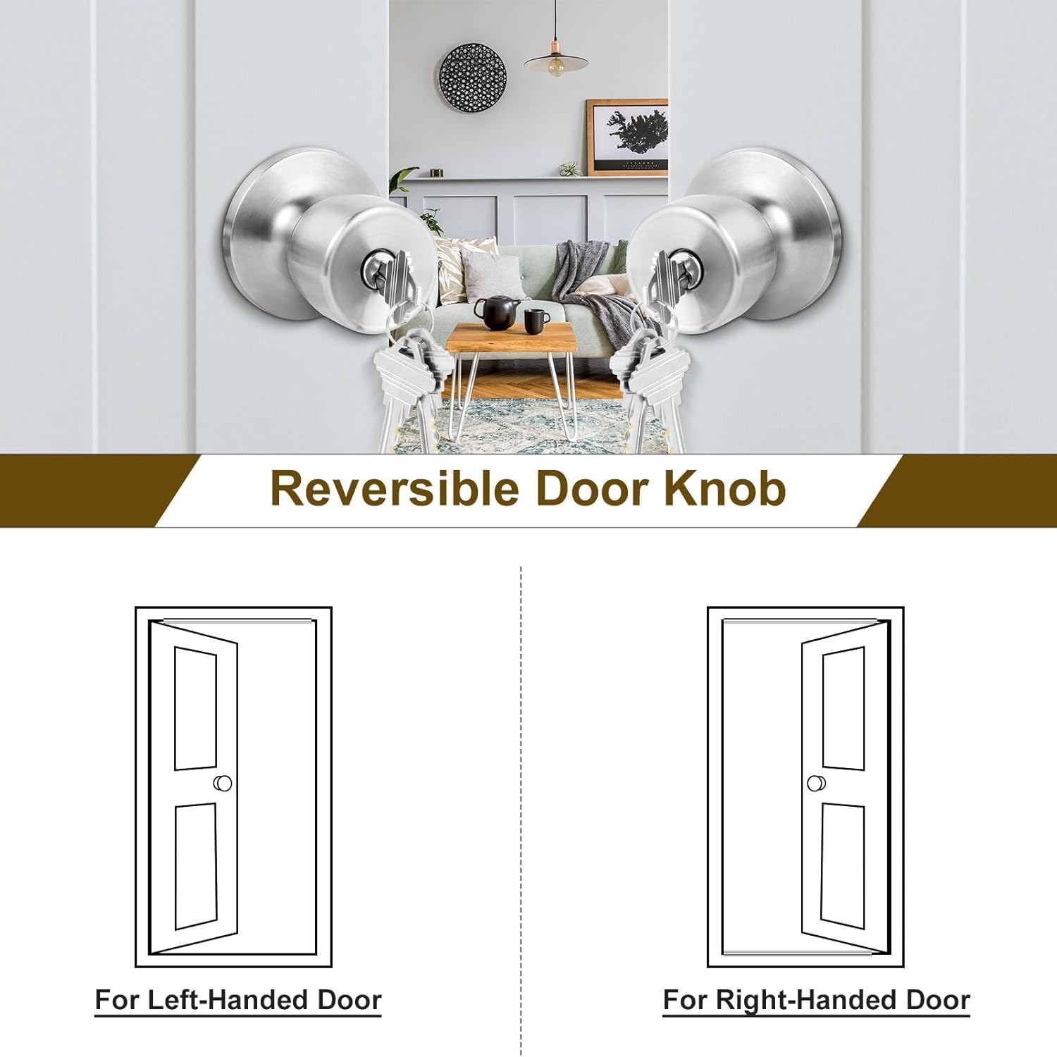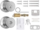 【Dual Safety】 HOSOM entry door knob is suitable for locking two sides of the door, with one side locked by a turn-button and the other by a key, making it the superior solution for building a secure environment. 【Door Compability】 Adjustable latches fit 2-3/8'' (60mm) or 2-3/4'' (70mm) back sets, and the lock set fits 1-3/8" (35mm) to 1-3/4" (40mm) thickness doors, meeting your requirements. 【Premium Material】 Crafted from heavy-duty and rustproof zinc alloy and boasting ANSI Grade 3 certification, this door knob is built to last, being the ultimate choice for those who value durability. 【Modern Design】 Feature a perfect satin nickel finish, our exterior door lock provides a simple yet stylish touch to your home or commercial area. 【Easy to Install】 Easy to assemble with just a screwdriver, and the installation process is quick and user-friendly, saving you time and effort. Product Description Stylish Grip & Heavy-Duty Construction Modern Sleek Door Knob The smooth satin nickel finish gives you a comfortable touch experience and safer use. Durable Construction Tests to support 200,000+ smooth OPEN/CLOSE cycles, our sturdy door knob enables long-term use. Full Set of Accessories Our locking hardware accessories come complete with all the necessary parts, ensuring a fast and effortless installation process, you can set up a secure and reliable system in no time! Warm Tips: 1. Avoid strong impact or distortion of lock core components, so as not to affect the service life of the lock. 2. Clean and lubricate the lock regularly to maintain the flexibility and durability of the lock core and body. Perfect Addition to Any Style Entrance Door 1 Residential Home 2 Commercial Building 3 Hotel Room 4 Hospital Type: Door Knob Set with Single Deadbolt Material: Zinc Alloy Color/Finish: Satin Nickel Shape: Round Certification: ANSI Grade 3 Package: 1 / 2 pack Different Types of Lock Add to Cart Add to Cart Add to Cart Add to Cart Add to Cart Add to Cart Customer Reviews 4.2 out of 5 stars 757 4.6 out of 5 stars 105 4.6 out of 5 stars 105 4.6 out of 5 stars 105 4.6 out of 5 stars 105 4.5 out of 5 stars 20 Price $8.99 $ 8 . 99 $24.99 $ 24 . 99 $24.99 $ 24 . 99 $98.99 $ 98 . 99 $85.99 $ 85 . 99 $44.99 $ 44 . 99 Style Entry Door Knob Entry Door Handle Dummy Door Lever Privacy Door Lever Passage Door Lever Entry Door Handleset Applicable Occasion Home or commercial area Home or commercial area Home or commercial area Home or commercial area Home or commercial area Home or commercial area Funtion Entrance/Exterior Entrance/Exterior Closet/French Door Bathroom/Bedroom Hallway/Closet Entrance/Exterior Quantity 1/2 1 2 6 6 1 Keys Available ✔ ✔ ✘ ✘ ✔ ✔ Consumers Frequently Bought Together Add to Cart Add to Cart Add to Cart Add to Cart Add to Cart Customer Reviews 4.2 out of 5 stars 757 4.7 out of 5 stars 2,992 4.7 out of 5 stars 204 4.6 out of 5 stars 888 4.6 out of 5 stars 203 4.6 out of 5 stars 71 Price $8.99 $ 8 . 99 $24.99 $ 24 . 99 $11.99 $ 11 . 99 $18.99 $ 18 . 99 $8.99 $ 8 . 99 — Features with a turn-button 5/8'' Radius 5/8'' Radius 5/8'' Radius Square Corner 1/4'' Radius Applicable Occasion Home or commercial area Bedroom, Bathroom, etc. Bedroom, Bathroom, etc. Bedroom, Bathroom, etc. Bedroom, Bathroom, etc. Bedroom, Bathroom, etc. Funtion Entrance/Exterior Door Hinge Door Hinge Self Closing Door Hinge Door Hinge Quantity 1/2 3/6/18/36/48 3/6 2/3/4 3/6/12 3/6 Removable Pin ✘ ✔ ✔ ✘ ✔ ✔