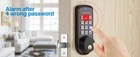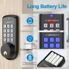 Aibocn Keyless Entry Deadbolt Lock with Keypad - Auto-Lock, Anti-Peeping Password, Easy Install for Home Bedroom Garage About this item 🔑【 The front door lock 】Keyless entry door lock: password or mechanical key. The keypad deadbolt works with most standard residential wood doors (1.49 IN/38MM to 1.89 IN/48mm). The front panel of is zinc alloy, the back panel is ABS plastic, the door lock with backlit keypad is perfect for bedroom, apartments, hotels, garage. 🔐【 Multiple protection mechanisms 】 The smart door lock can automatically lock at a fixed time (10-999 s, customizable). Plus, with anti-peeping function when entering passwords (alarm for 4 wrong entering). After the privacy mode is set, no one can enter, and you will not be disturbed. Besides, passage mode can keep the smart lock unlocked, which is convenient for the children and the elderly to enter and exit. ☔【 Suitable for indoor and outdoor 】The smart deadbolt can withstand light sprinkles and cold conditions: IP54 waterproof(suitable for front doors with eaves and accept lightly sprinkles), full operating temperature is between -4℉/20°C and 158℉/70°C (Please note, do not exceed this temperature use). This deadbolt lock are the best choice for indoor and outdoor. 📱【 Long battery life 】The digital door lock has the low battery alarm function: when the power of the battery is low, the bedroom door lock will make a beep to remind you; 4 AA alkaline batteries provide 8000 openings (about 6 months-1 year). So you don't have to change the battery frequently. 🛠【 DIY installation 】With just a screwdriver, watching a short video and reading the user manual, the electronic door lock can be easily installed in 15 minutes.If you have any questions about the keypad deadbolt lock, please feel free to contact us, we will provide you with 24/7 online after-sales email service! Product Description Aibocn keypad door lock Aibocn bedroom door lock is suitable for most types of door applies to left-hand door and right-hand door , forged with zinc alloy high-quality materials, it is not only weatherproof , high temperature and low temperature resistance , but also has a decorative function. Home security door lock Previous page Anti-Peep Password You can enter random numbers before and after the correct password,so deadbolt smart lock can greatly protect your passcode privacy. Learn More Next page the keyless deadbolt is easy to install , convenient and safe operation , which improves the taste of furniture and guards your family security at the same time. Previous page Next page Auto-Lock Alarm afer wrong password Passage mode Privacy mode When you use this privacy function of the keyless door lock, you can have a quiet environment to study or rest, no one can disturb you. Fits left & right handed doors Code door lock is suitable for most types of door applies to left and right-hand door, w orks with most standard residential wood doors (1.49 IN to 1.89 IN). Previous page