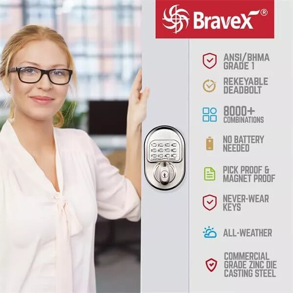 This keyless entry door lock is fantastic! No batteries to worry about—just a reliable mechanical keypad and key option. Perfect for homes, rentals, or businesses, it’s ANSI Grade 1 certified, super durable, and easy to rekey. I love not having to enter the code repeatedly—it stays unlocked until you manually lock it. Works flawlessly and adds great security and convenience. Highly recommend!