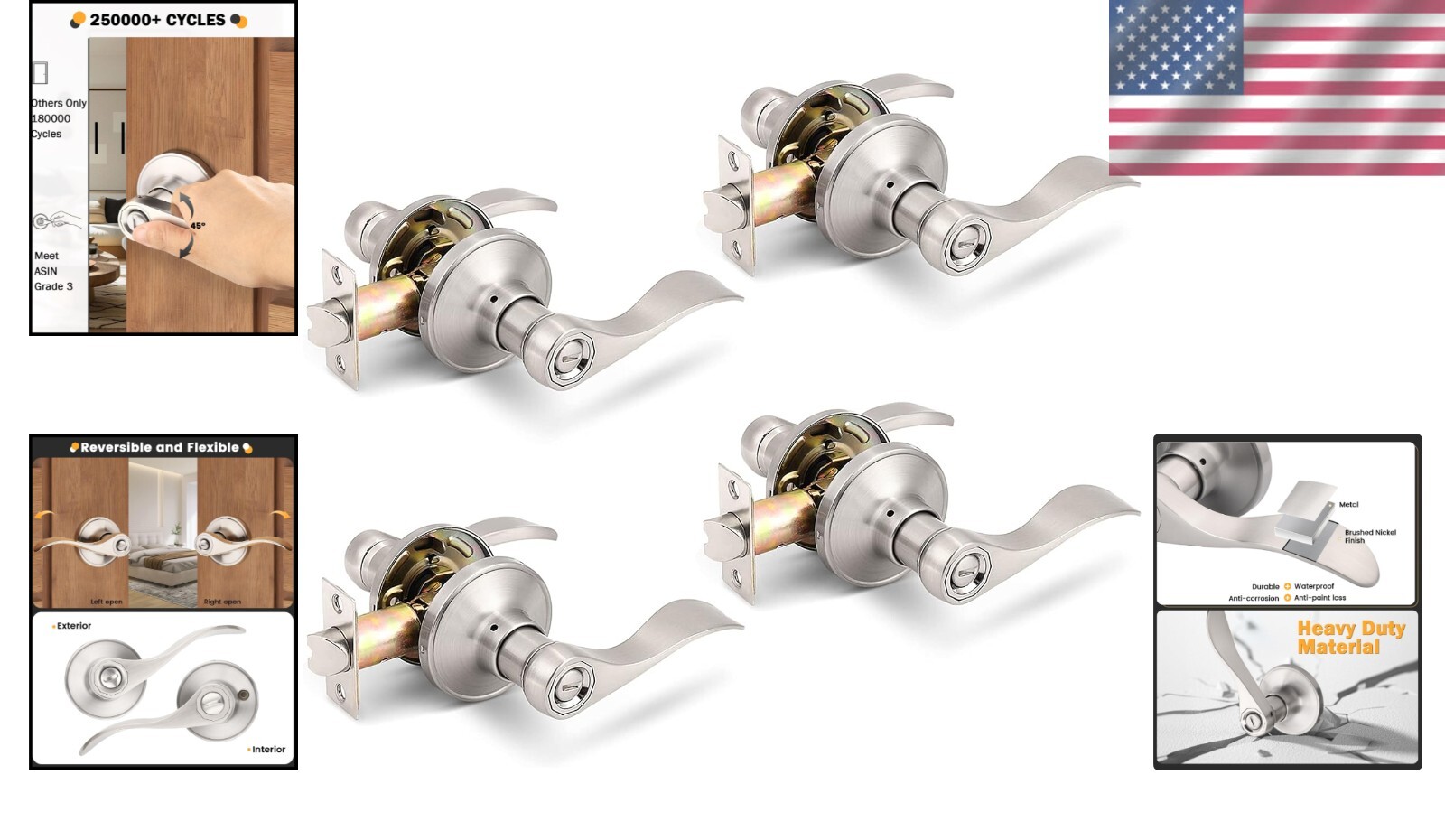 Contemporary 4 Pack Privacy Door Handles - Pre-Installed Keyless Convenience ‹ › ‹ › ‹ › ‹ › ‹ › ‹ › ‹ › ‹ › ‹ › Contemporary 4 Pack Privacy Door Handles Pre-Installed Keyless Convenience No key required: Enjoy the ease of a thumb-turn button interior for privacy. Robust endurance: Rated for over 250,000 cycles, surpassing industry standards. Keyless locking solution: Quick, secure locking ideal for bedrooms, bathrooms, and private offices. Modern design: Ergonomically crafted wave style for a comfortable grip and satin nickel finish for lasting elegance. Reversible: Suitable for both left and right-handed doors with adjustable latch fitting all standard doors. Easy install: Quick and effortless mounting with just a screwdriver; lifetime customer support included. Features: High-quality heavy-duty zinc alloy construction. Meets ANSI Grade 3 security standards. Sleek satin nickel finish adds a touch of sophistication. Adjustable latch size of 2-3/8" or 2-3/4" (60mm or 70mm). Fits standard door thicknesses of 1-3/8" to 1-3/4" (35mm-45mm). Embrace Modern Convenience Transform your living spaces with our Contemporary 4 Pack Privacy Door Handles. Perfectly blending form and function, these privacy levers eliminate the hassle of keys while providing robust security and an elegant aesthetic. Crafted with heavy-duty zinc alloy, our door handles effortlessly endure the wear and tear of daily use without compromising style. Not only do they offer a seamless locking experience, but their reversible design makes installation a breeze in almost any home. Upgrade your privacy solutions with these beautifully designed door handles that promise both durability and a sophisticated presence in any room. Don't settle for ordinary when you can experience the extraordinary—order your Contemporary 4 Pack Privacy Door Handles today! Shipping Free & Fast Shipping - We offer free shipping to most of the USA with a normal delivery time of 3-7 days. However, due to the current situation, additional delivery time (up to 3 weeks) may be required for some items. Alternative Carriers - We may use alternative carriers (e.g. USPS, FedEx, UPS, etc.) to ensure your package arrives safely and on time. Due to the use of multiple carriers, we are unable to provide a tracking number automatically. Handling Time - Orders are processed and shipped within 1-2 business days of receiving cleared payment. Shipping Restrictions - Shipping to Alaska, Hawaii, Puerto Rico, Guam, and other US territories may incur shipping charges or delivery restrictions. Please contact us before ordering, or your order can be refunded/cancelled. State Restrictions - There may be restrictions based on your state of purchase. For example, certain items may not be shipped to California due to state regulations. Contact for Tracking Updates - If you require tracking updates or have any concerns about the delivery of your order, please feel free to contact us, and we will be happy to assist you. Return 30-Day Hassle-Free Returns - We want you to be completely satisfied with your purchase. If you are not, you can return the item within 30 days of receiving it for a full refund or exchange. Easy Return Process - To start a return, simply contact us and we will provide you with a prepaid return shipping label and detailed instructions. Restocking Fee - There are no restocking fees for returns. However, the buyer is responsible for return shipping costs if the return is not due to a seller's error. Refund Processing Time - Refunds will be processed within 5 business days of receiving the returned item in its original condition. Payment We accept all major credit cards, PayPal, and Apple Pay for your convenience. Your payment information is secure and encrypted to ensure a safe and seamless transaction. Please complete your payment within 3 days of purchase to avoid any delays in shipping. Feedback Your feedback is extremely important to us. We strive to provide the best products and customer service possible. If you are satisfied with your purchase, please take a moment to leave us a positive review. If you have any concerns or issues with your order, please contact us before leaving negative feedback. We are committed to resolving any problems and ensuring your satisfaction. Contact Us If you have any questions or concerns, please feel free to reach out to our customer support team. You can contact us through the eBay messaging system. We are available Monday to Friday, 9:00 am to 5:00 pm EST, and we will do our best to respond to your inquiry within 24 hours. Buy it now and enjoy a pleasant shopping experience! UPC: Not Set Model: Not Set Unit Quantity: 4 Material: Zinc Suitable For: Bathroom Door,Bedroom,Bathroom,Home,Offices,Private Spaces Features: Easy to Install,Keyless,Reversible,Privacy (lock without key) Items Included: Hardware,5 Pack Reversible Door Lever,Latch,Strike Plate,Screws,Instruction Brand: Unbranded Type: Door Handle Color: Satin Nickel Finish: Nickel Item Height: Not Set Item Width: Not Set Item Length: Not Set Knob Diameter: 1 in MPN: Not Set Style: Contemporary Number in Pack: 4 Shape: Wave/Drop Lever Country/Region of Manufacture: Not Set Door Handing: Not Set Item Depth: 1 in Manufacturer Warranty: Not Set Item Weight: 1 lb Unit Type: lb Fixings Supplied: Not Set