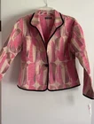 Khangura Women's Pink Brown Tapestry Jacket/Blazer Black Trim Sz M NWT