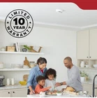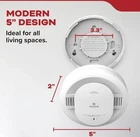 DETECTS SMOKE: Sounds a loud 85-decibel alarm when smoke is detected - 3 long beeps with red LED light flashing in time, repeating. NEVER-CHANGE 10-YEAR BATTERY: No low battery chirps or battery changes for 10 years & saves up to $40 over the life of the detector. (10-yr limited warranty on alarm, not a battery performance claim.) ENHANCED SENSING TECHNOLOGY: Reduces false alarms often caused by cooking. Comprehensively tested to meet the latest UL standards, meets UL 217 9th Edition & FCC standards. SELF-TESTING ALARM: Internal components ensure alarm is always operating as expected. Not a substitute for a manual push test, perform a button test once per week to verify alarm operation. 3 LED NOTIFICATIONS: LED lights indicate alarm status, green = normal operation, amber = operating error, red = smoke detected. EASY INSTALLATION: No wiring needed, simply mount the bracket onto the ceiling and twist & click the 5-inch smoke alarm into the bracket. TEST & HUSH BUTTON: Makes it easy to test the 5-inch smoke detector and silence false alarms, should they occur.